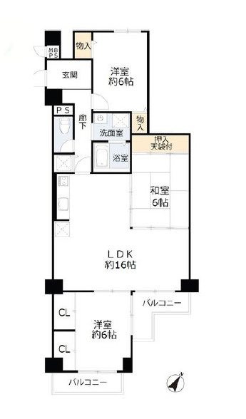 LDK 16.5帖/洋室 6.0帖/洋室 6.0帖/洋室 5.5帖 - 向き